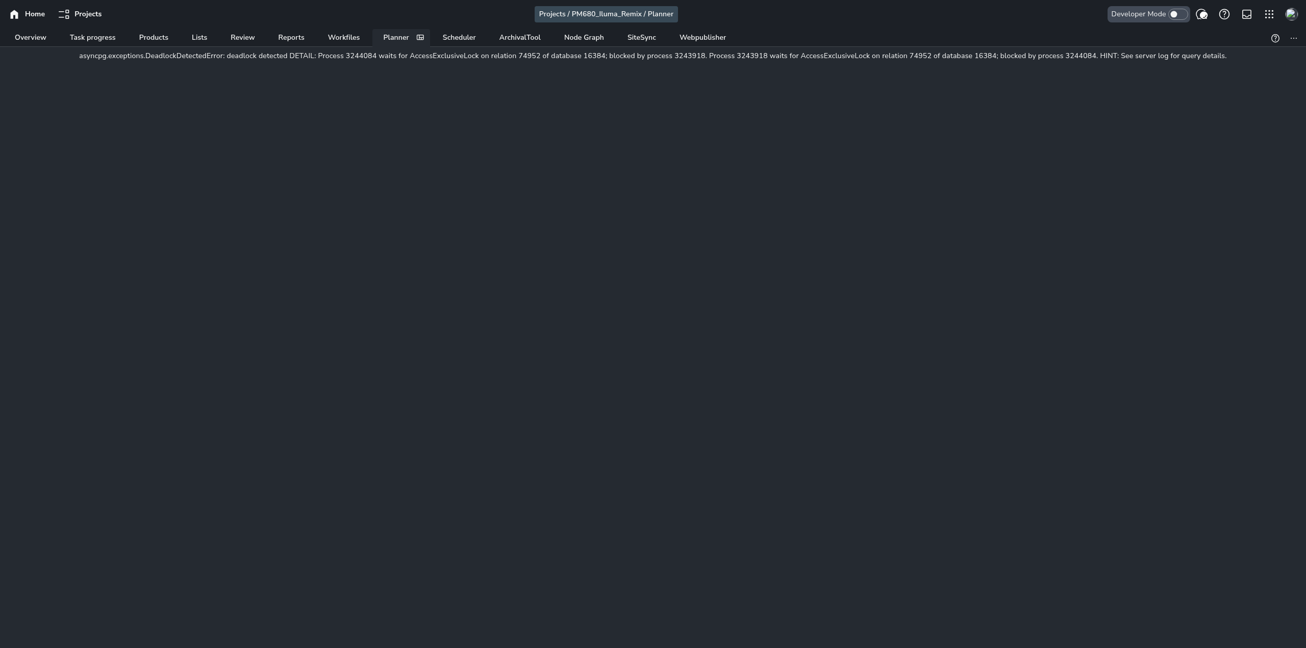 Whenever I try to open a planner tab in an archived project, the planner tab just keeps twitching/reloading until it crashes completely.